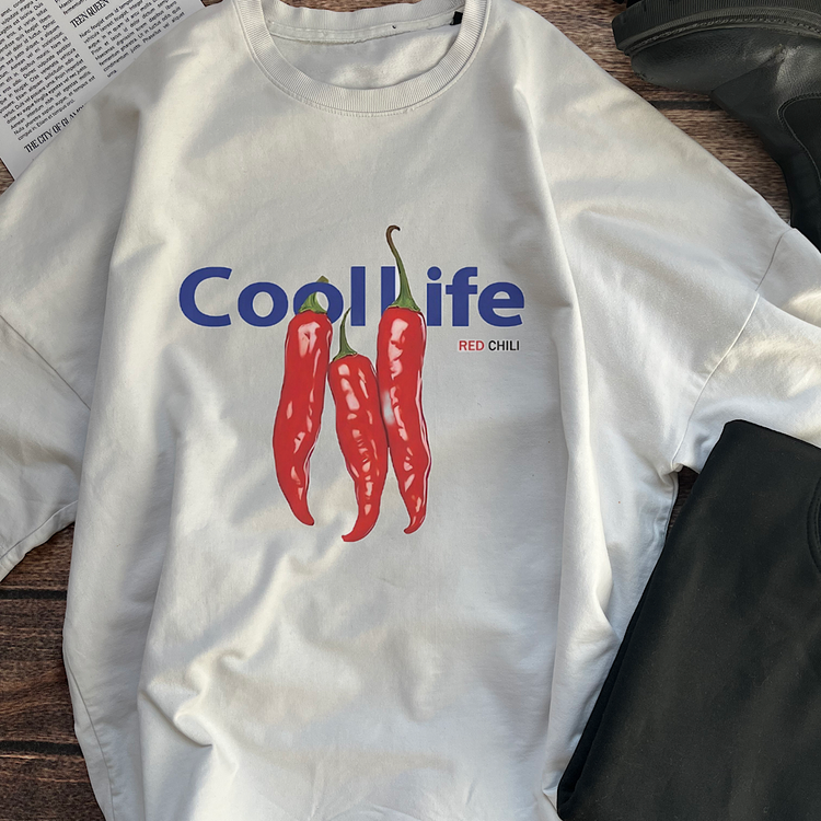 این تیشرت نخ پنبه طرح فلفل با نوشتهی Cool Life یک گزینهی سبک، خنک و فوقالعاده راحت برای استفادهی روزمره است. جنس نخ پنبه باعث شده تیشرت تنخور لطیف و نفسکش داشته باشد و روی پوست کاملاً راحت باشد. چاپ طرح فلفل همراه با نوشته، با کیفیت بالا انجام شده و در شستوشو ترک نمیخورد و رنگش ثابت میماند.